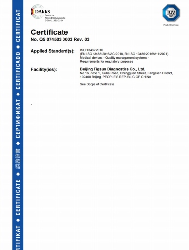 Beijing Tigsun Diagnostics Co,.Ltd. was founded in 2004 with headquartered in the capital city of Beijing, specializes in the field of medical test. It is a high-tech enterprise integrated with the R & D, production, operation and sales of China's professional chemiluminescence in vitro diagnostic products. Supporting equipment research and development, production and sales. We have 100,000 grade in vitro diagnostic reagents production department certified by and production facilities. We have the strength for research and development, production, and product registration.
